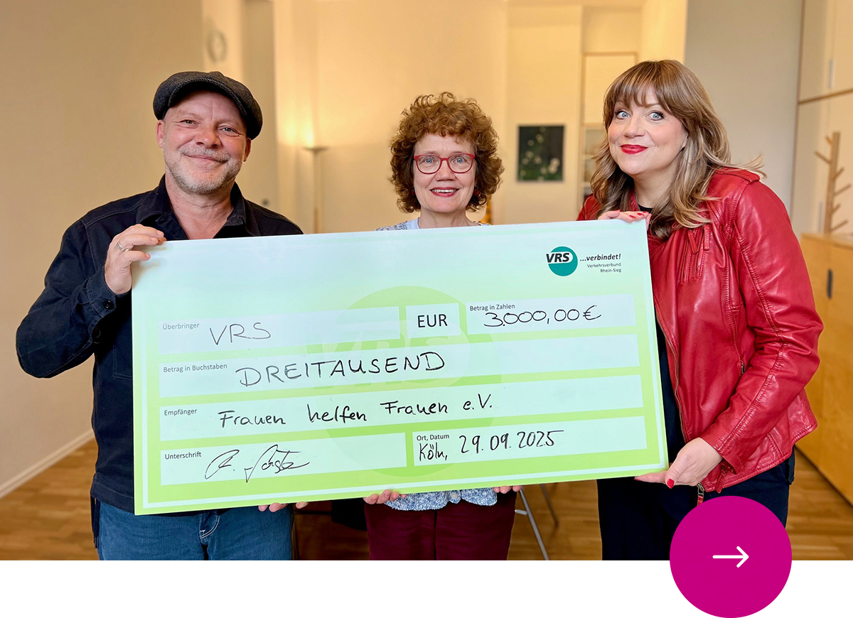 | KöllePally-Siegerin unterstützt mit Preisgeld wieder „Frauen helfen Frauen e.V. Köln“ Beim vom Verkehrsverbund Rhein-Sieg (VRS) initiierten Darts-Event KöllePally konnte Comedienne Mirja Regensburg ihren Titel in diesem Jahr verteidigen. Ihr Preisgeld spendet sie wie im Vorjahr an den Verein „Frauen helfen Frauen e.V. Köln“, der sich für gewaltbetroffene Frauen und ihre Kinder einsetzt. Die dritte Ausgabe von KöllePally findet am 30. Mai 2026 im Theater am Tanzbrunnen statt. Tickets sind bereits hier im Vorverkauf erhältlich: Mehr... |